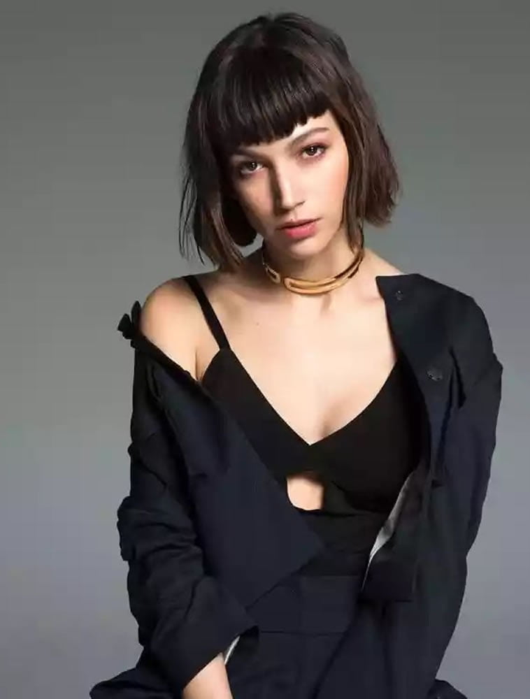 – Young ladies aren’t afraid of experiments. Those with the right face shape features can choose from shaved neck or oblique bangs.