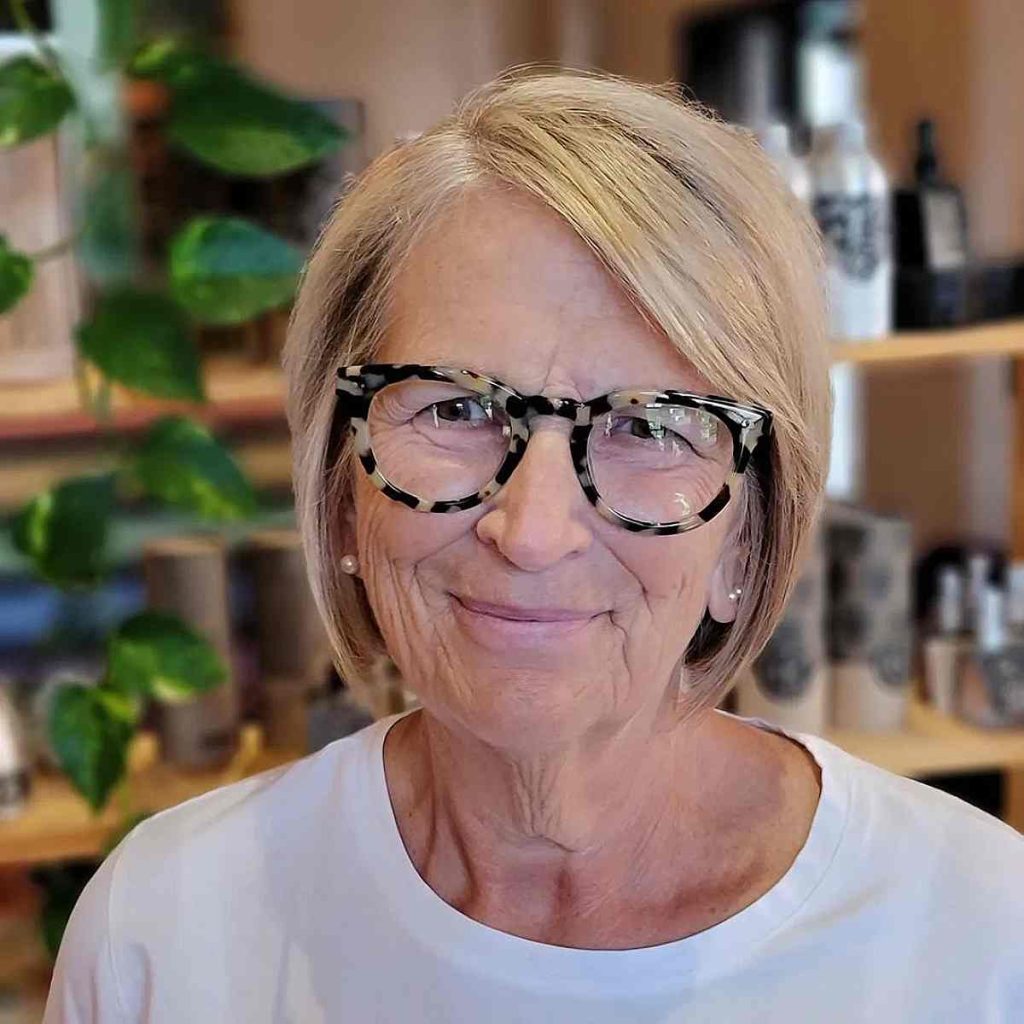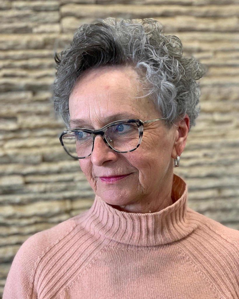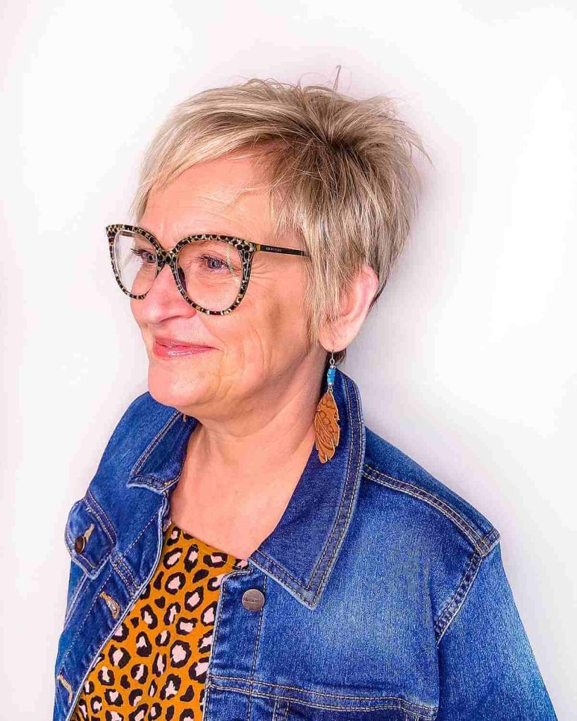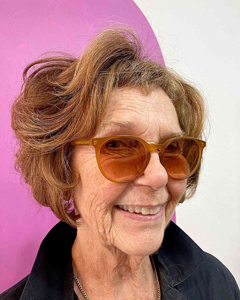 Short haircuts are timeless and remain a popular choice for women over 70. A classic pixie cut, for example, offers a chic and low-maintenance option that exudes confidence and style. This haircut beautifully frames the face and draws attention to the eyes and glasses, creating a sophisticated and youthful look.