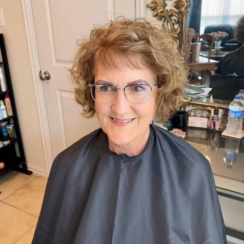 Curly-haired women can embrace their natural texture with styles that highlight their curls. Short, cropped cuts or longer, layered styles can create a stunning effect that pairs beautifully with glasses. Curls add texture and dimension, giving the overall look a lively and vibrant touch.